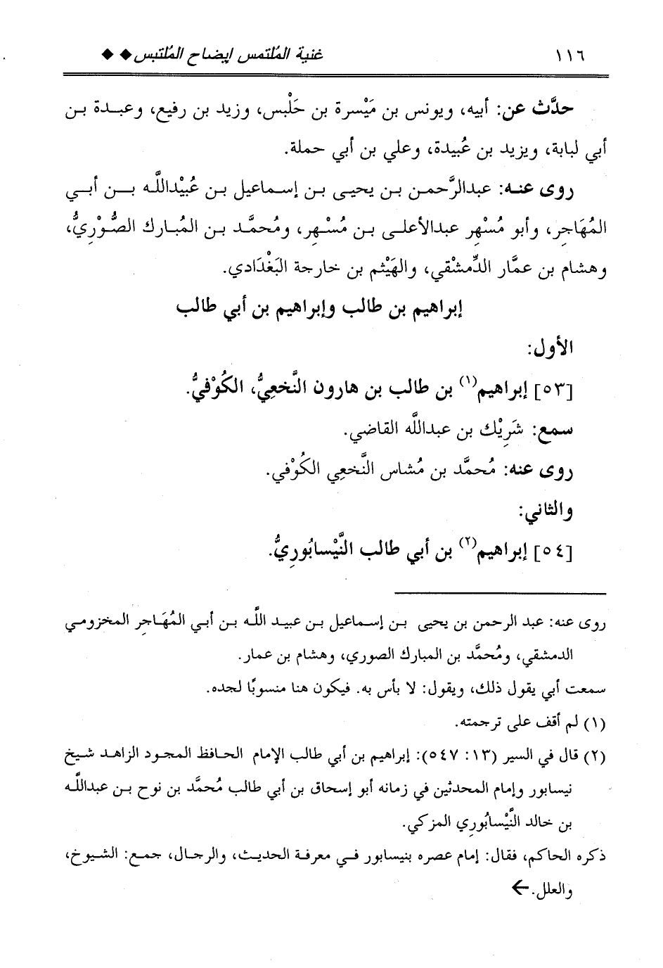 الأول: [53] إِبْرَاهِيم بن طَالب بن هَارُون النَّخعِيّ، الْكُوفِي.