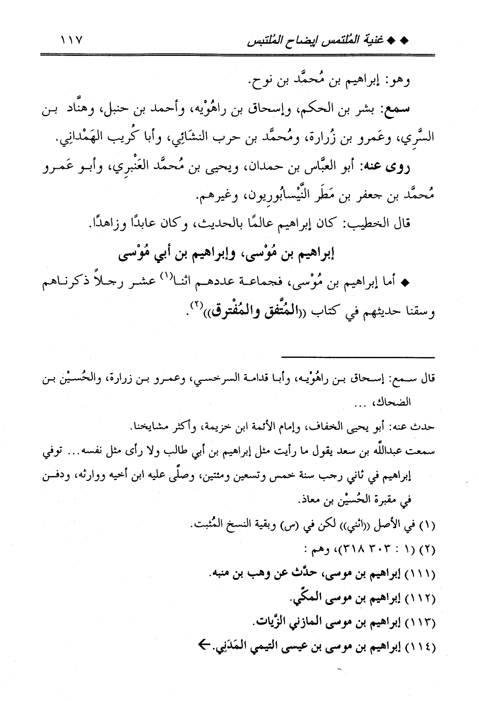 أما إِبْرَاهِيم بن مُوسَى، فجماعة عَددهمْ أثنا عشر رجلا ذَكَرْنَاهُمْ وسقنا حَدِيثهمْ فِي كتاب ((الْمُتَّفق والمفترق)) .