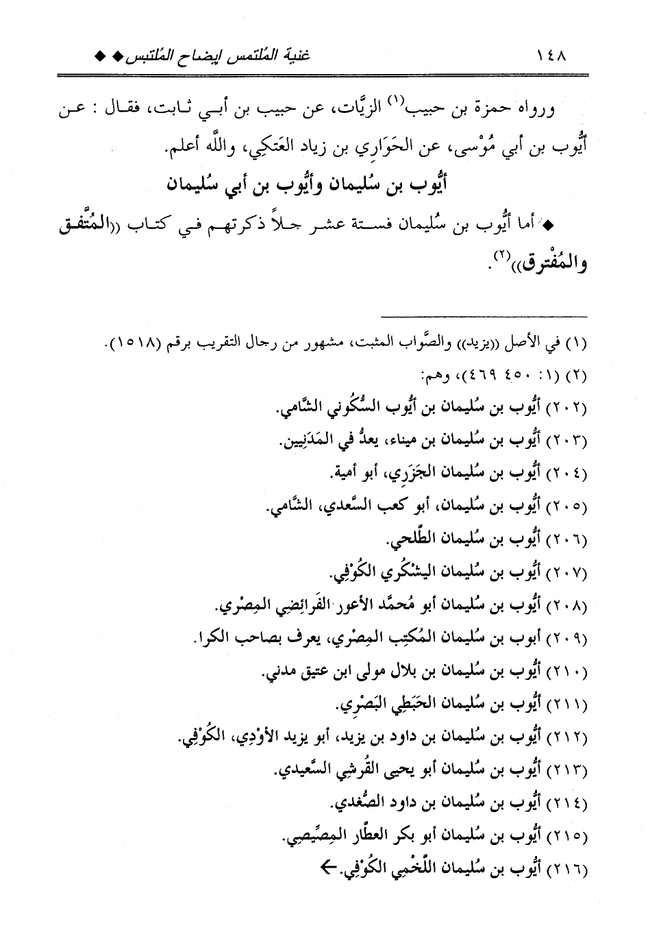 أما أَيُّوب بن سُلَيْمَان فستة عشر جلا ذكرتهم فِي كتاب " الْمُتَّفق والمفترق "