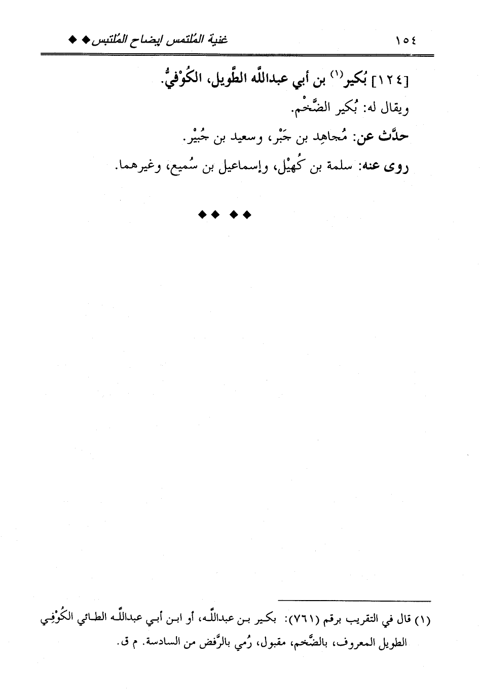 [124] بكير بن أبي عبد الله الطَّوِيل، الْكُوفِي.