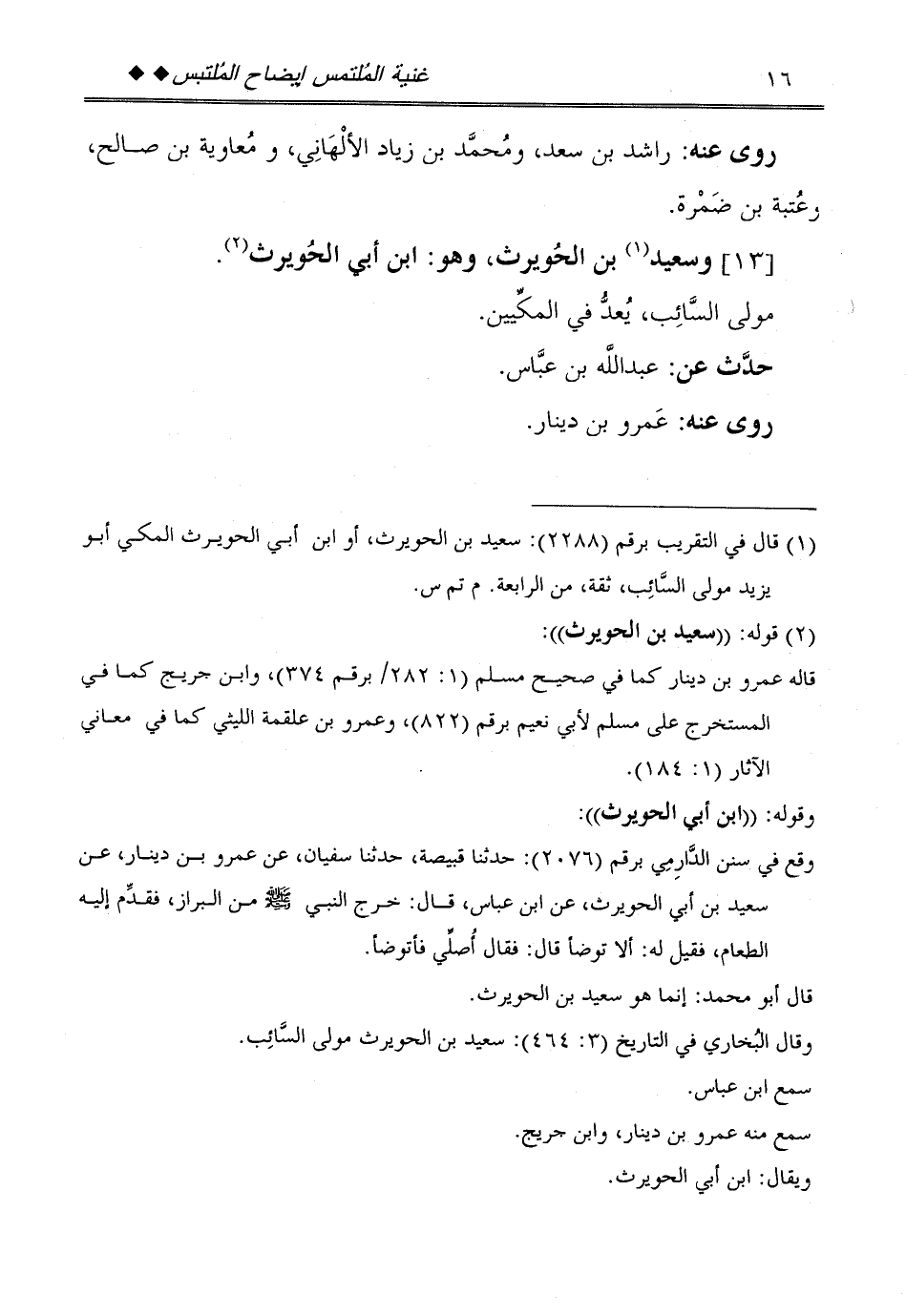 [13] وَسَعِيد بن الْحُوَيْرِث، وَهُوَ: ابْن أبي الْحُوَيْرِث.