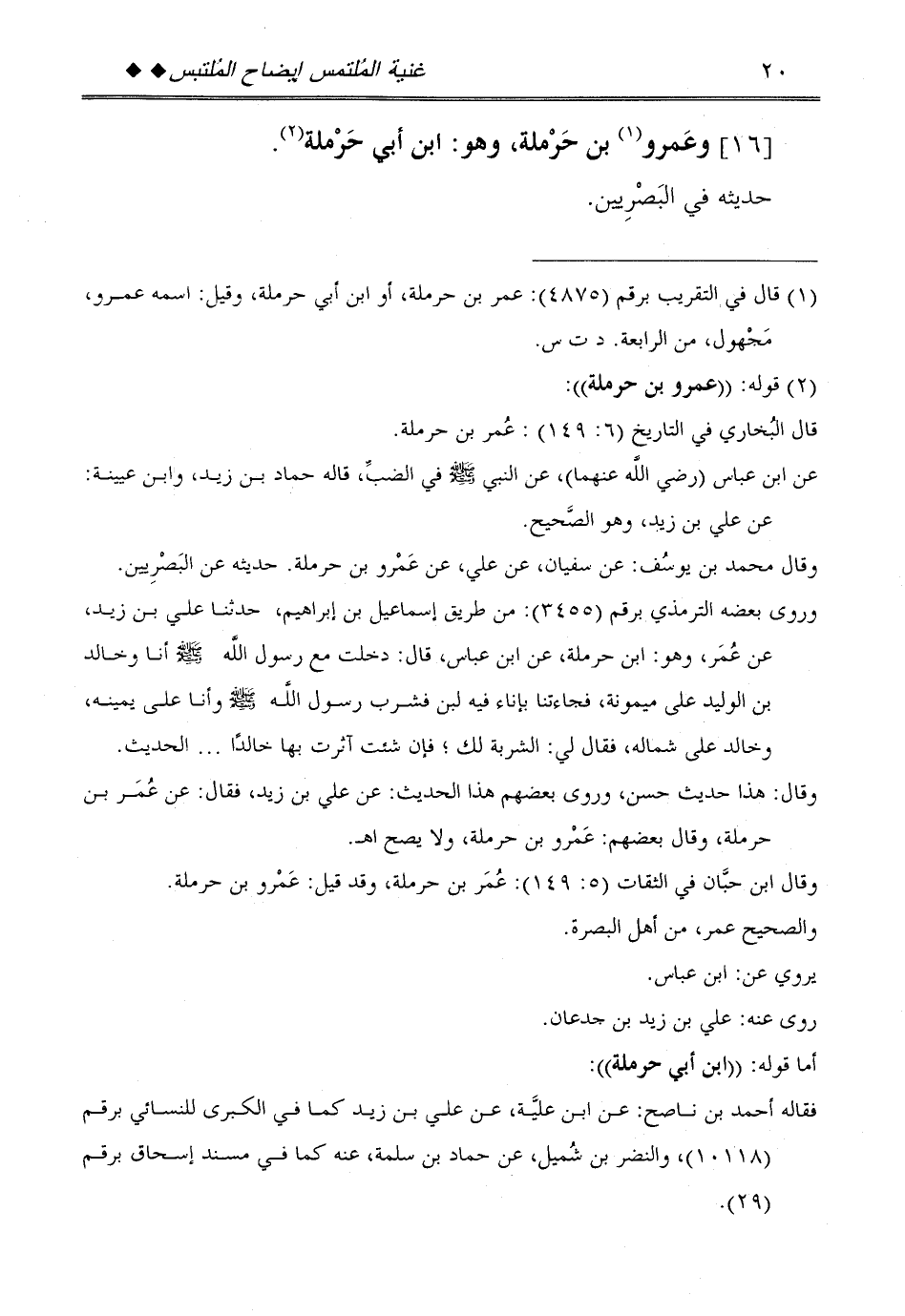 [16] وَعَمْرو بن حَرْمَلَة، وَهُوَ: ابْن أبي حَرْمَلَة.