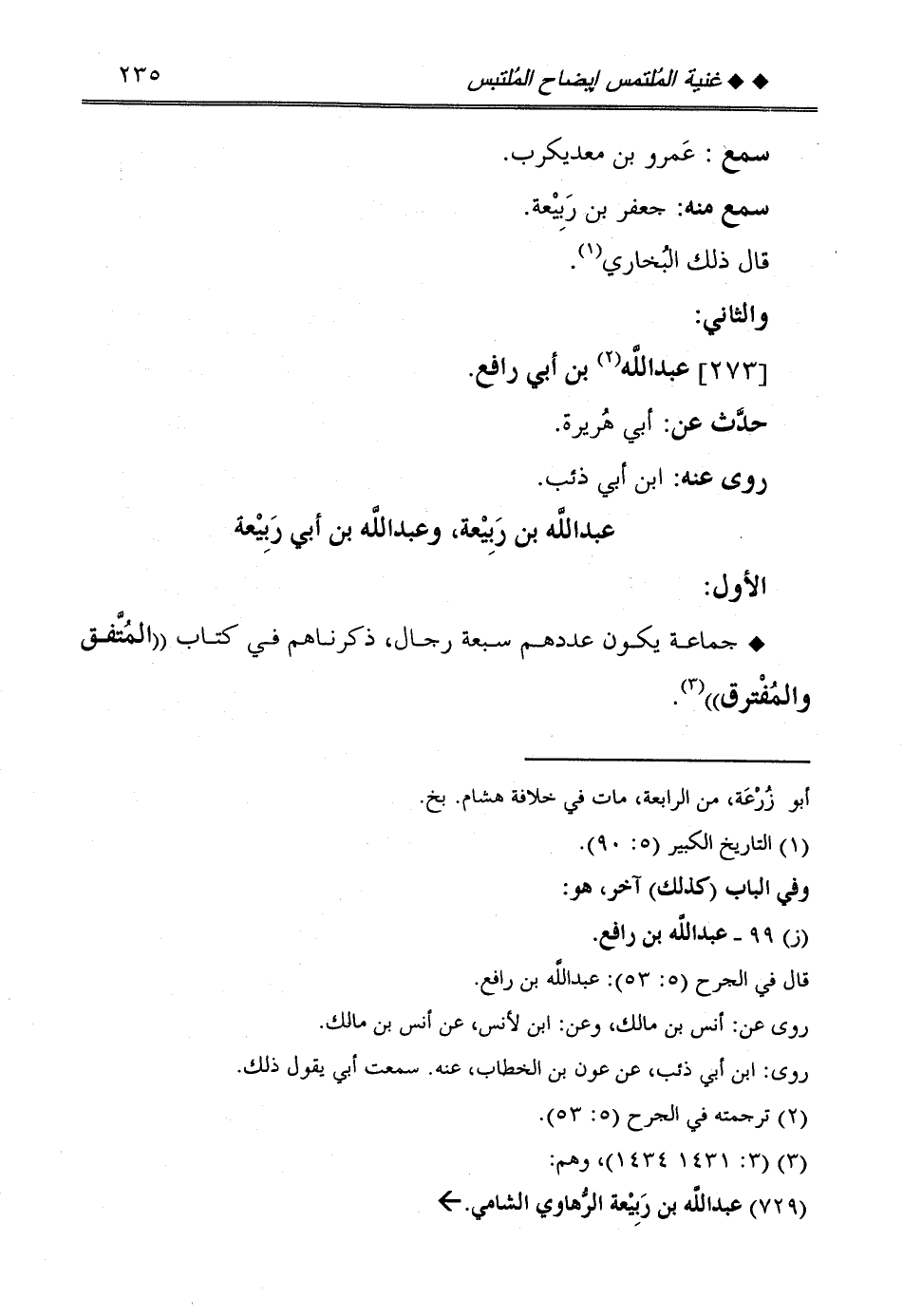 جمَاعَة يكون عَددهمْ سَبْعَة رجال، ذَكَرْنَاهُمْ فِي كتاب ((الْمُتَّفق والمفترق)) .