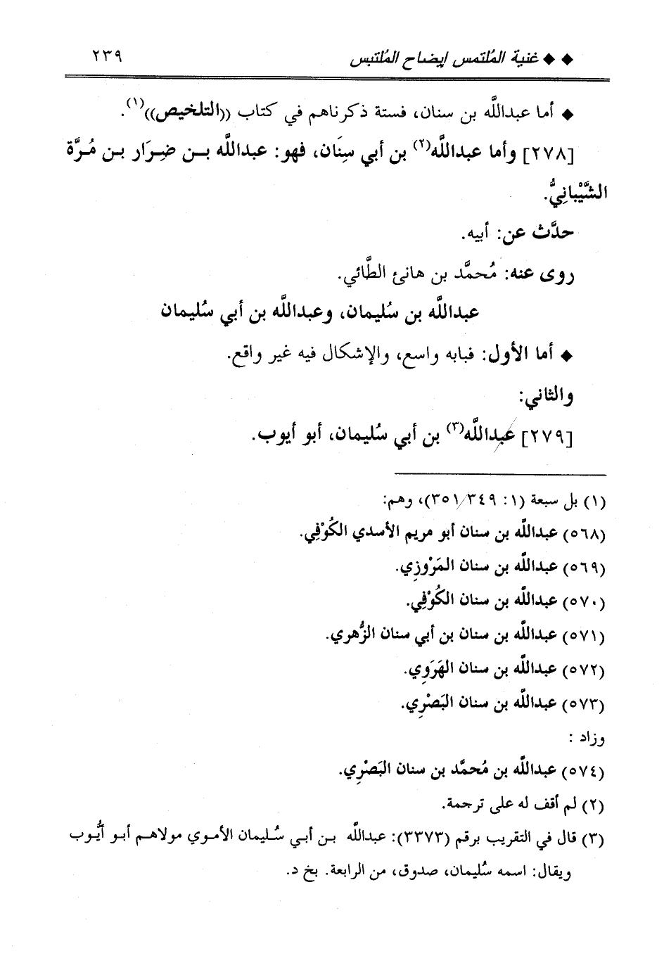 أما عبد الله بن سِنَان، فستة ذَكَرْنَاهُمْ فِي كتاب ((التَّلْخِيص)) .