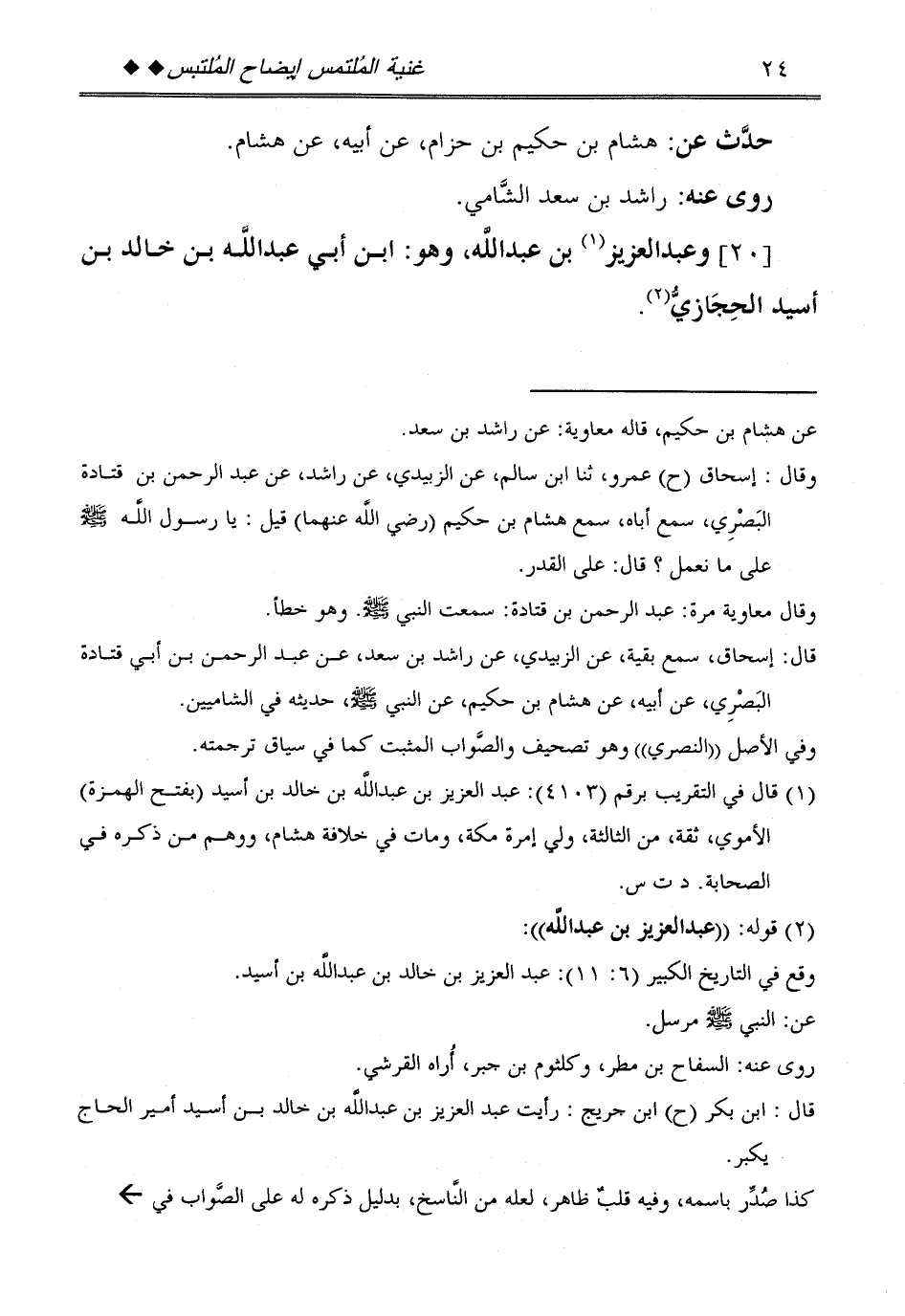 [20] وَعبد الْعَزِيز بن عبد الله، وَهُوَ: ابْن أبي عبد الله بن خَالِد بن أسيد الْحِجَازِي.
