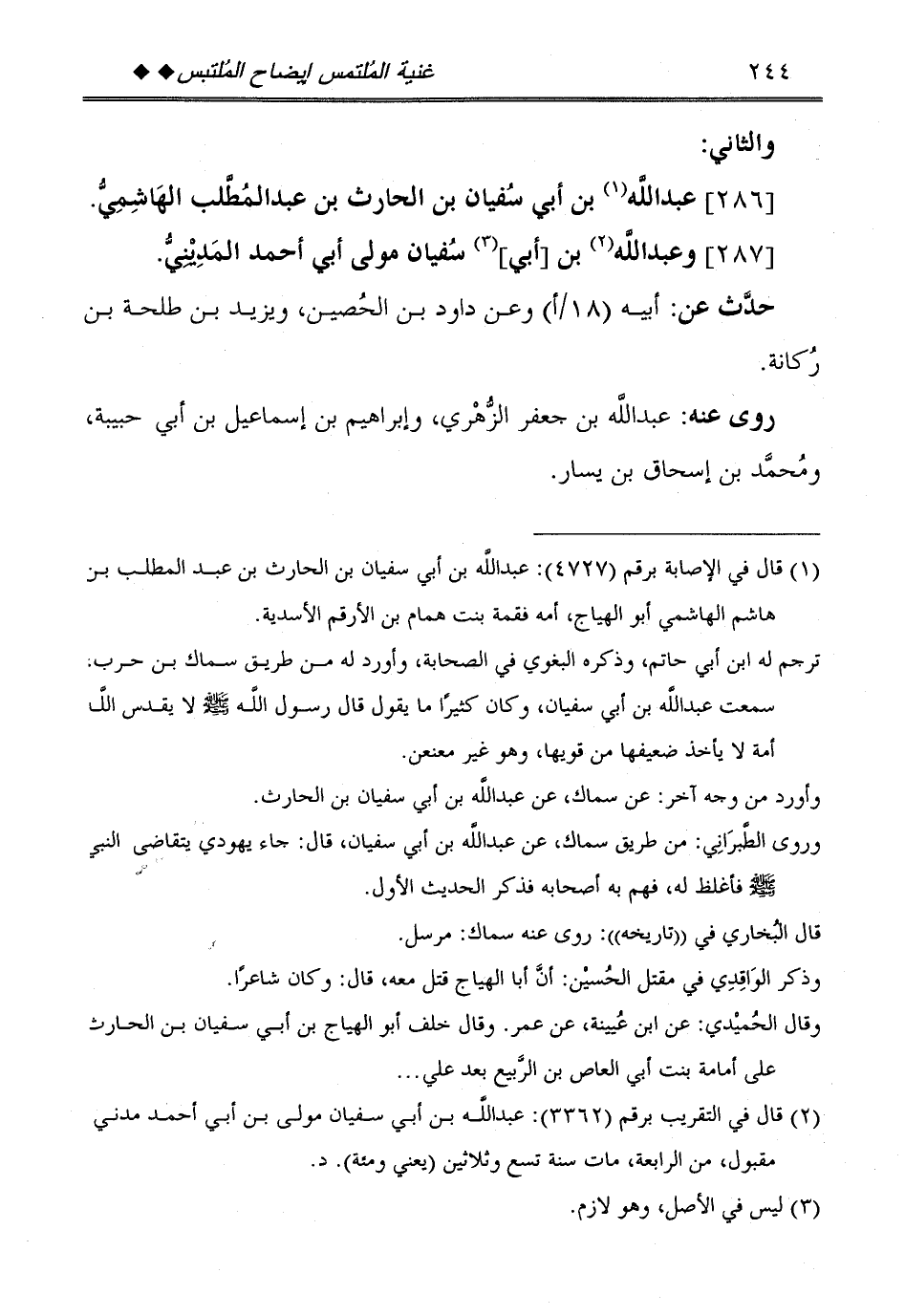 [286] عبد الله بن أبي سُفْيَان بن الْحَارِث بن عبد الْمطلب الْهَاشِمِي.