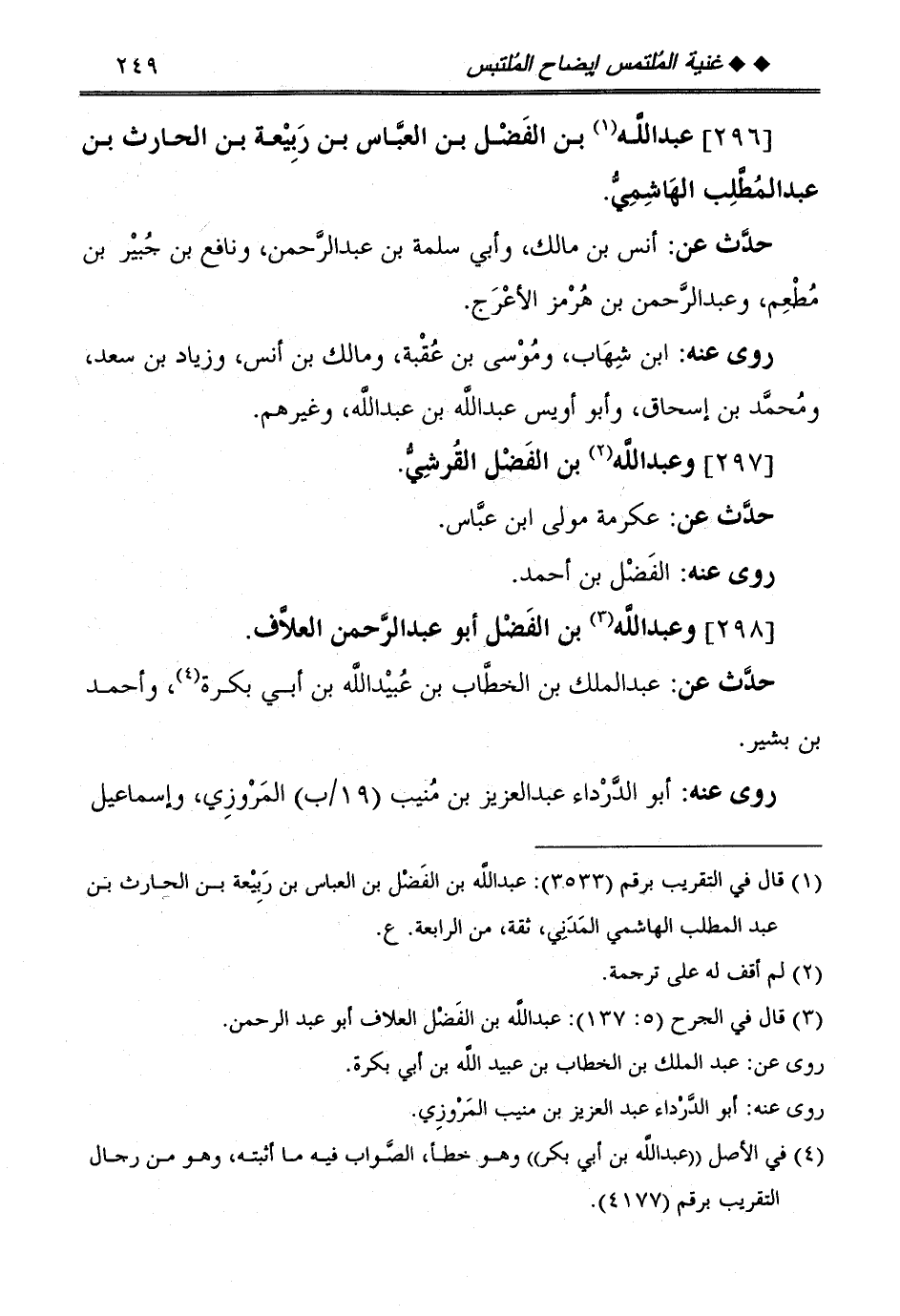 [296] عبد الله بن الْفضل بن الْعَبَّاس بن ربيعَة بن الْحَارِث بن عبد الْمطلب الْهَاشِمِي.