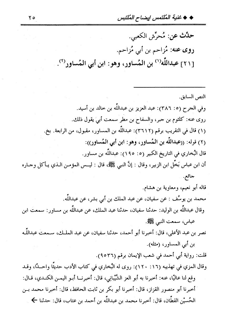 [21] عبد الله بن الْمسَاوِر، وَهُوَ: ابْن أبي الْمسور