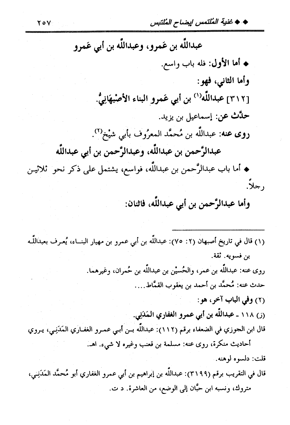 أما بَاب عبد الرَّحْمَن بن عبد الله، فواسع، يشْتَمل على ذكر نَحْو ثَلَاثِينَ رجلا.