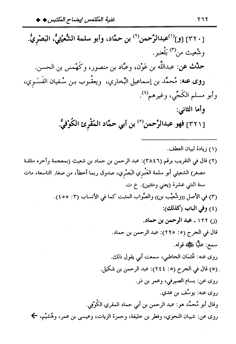 [320] [و] عبد الرَّحْمَن بن حَمَّاد، وَأَبُو سَلمَة الشعيثي، الْبَصْرِيّ. وشعيث من بلعنبر.