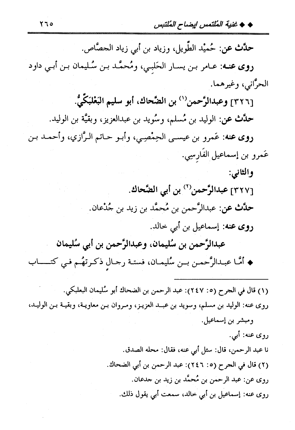 [326] وَعبد الرَّحْمَن بن الضَّحَّاك، أَبُو سليم البعلبكي.