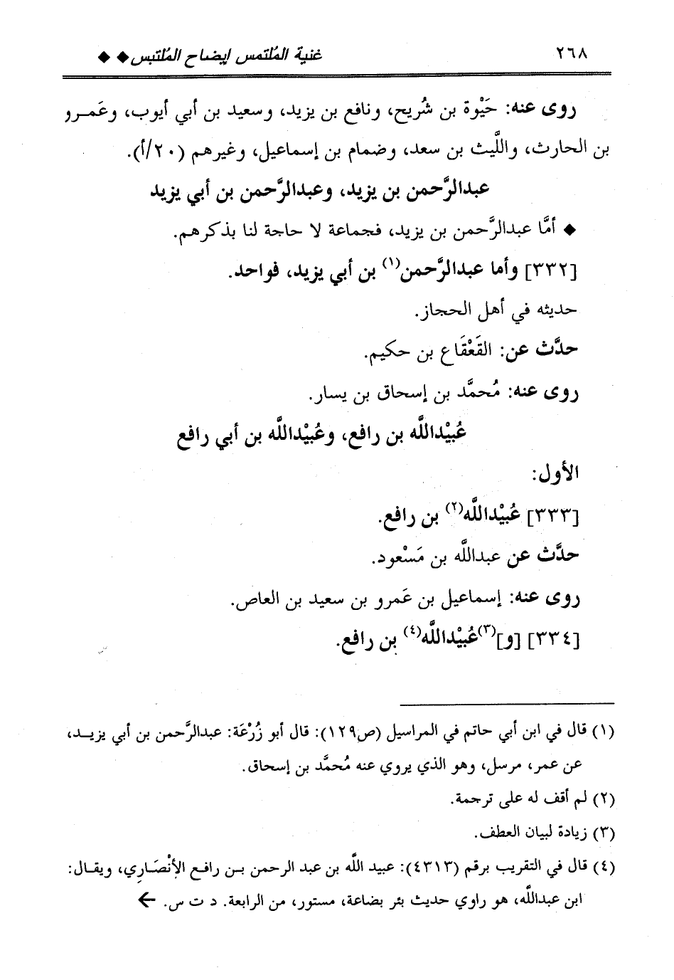 [332] وَأما عبد الرَّحْمَن بن أبي يزِيد، فواحد.