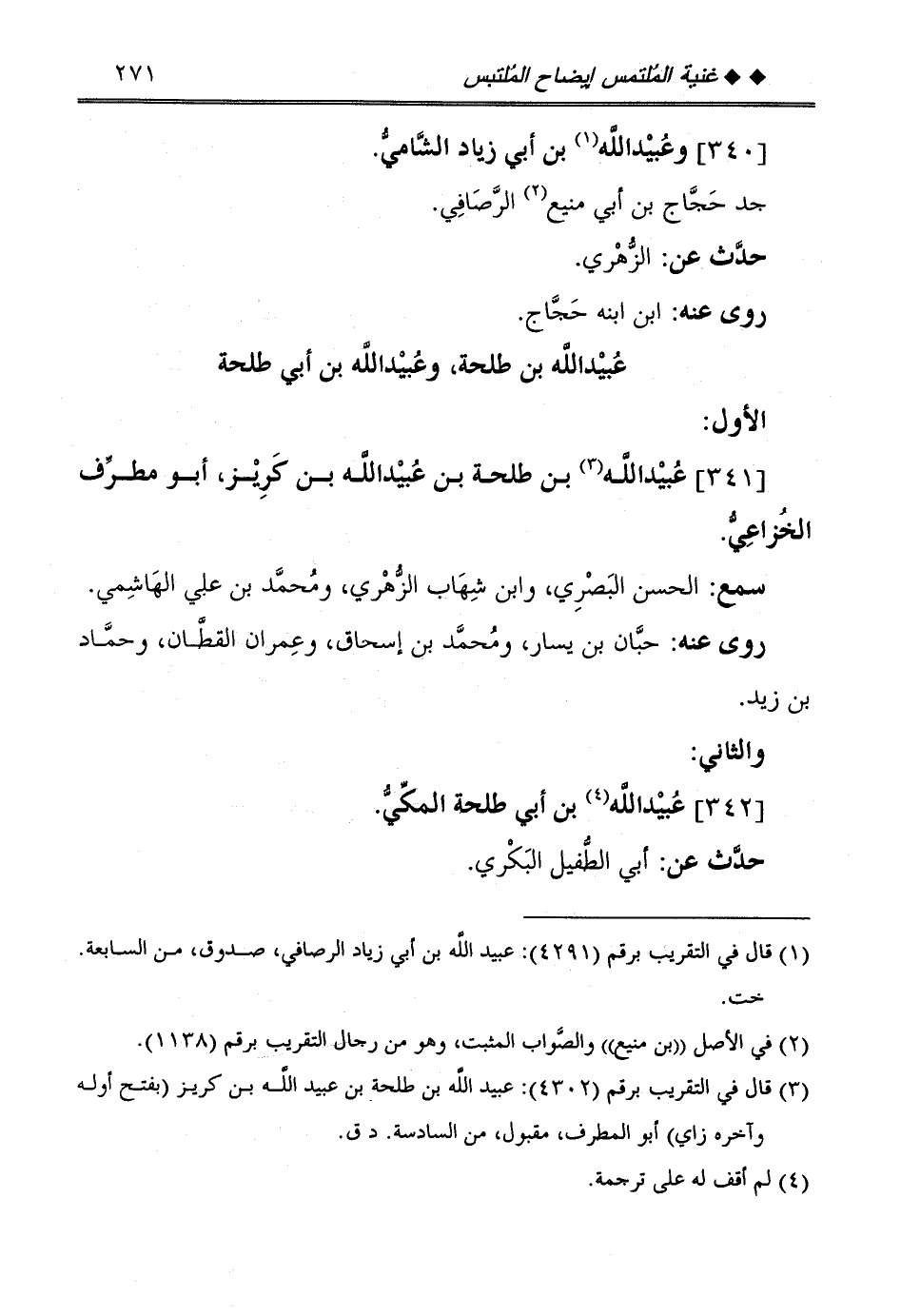 [341] عبيد الله بن طَلْحَة بن عبيد الله بن كريز، أَبُو مطرف الْخُزَاعِيّ.