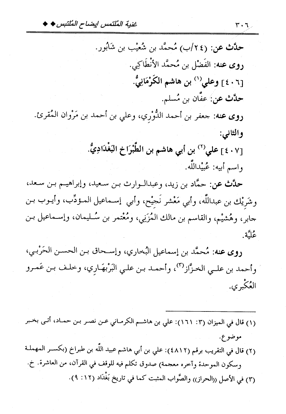 [406] وَعلي بن هَاشم الْكرْمَانِي.