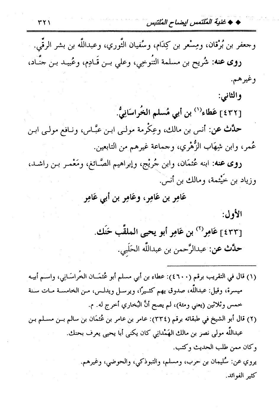 [433] عَامر بن عَامر أَبُو يحيى الملقب حنك.
