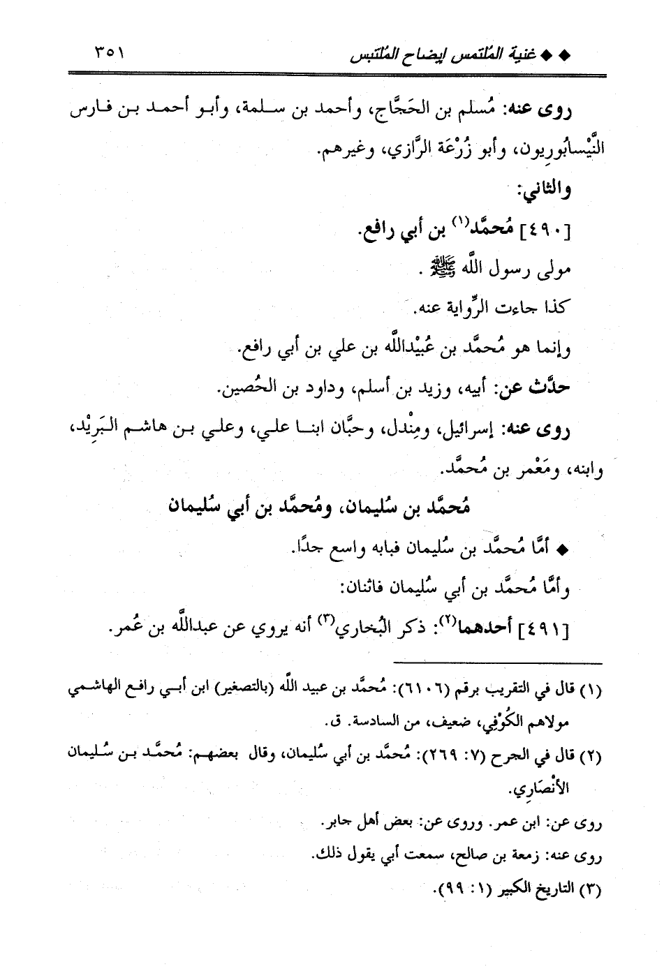 [491] أَحدهمَا: ذكر البُخَارِيّ أَنه يروي عَن عبد الله بن عمر