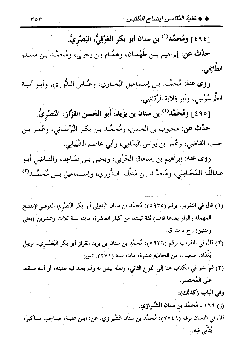 [494] وَمُحَمّد بن سِنَان أَبُو بكر العوقي، الْبَصْرِيّ.