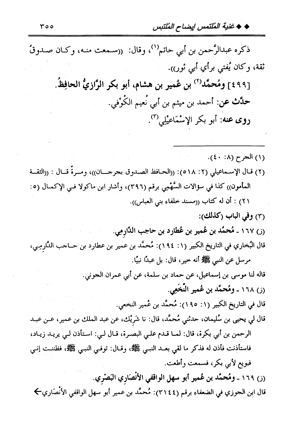 [499] وَمُحَمّد بن عُمَيْر بن هِشَام، أَبُو بكر الرَّازِيّ الْحَافِظ.