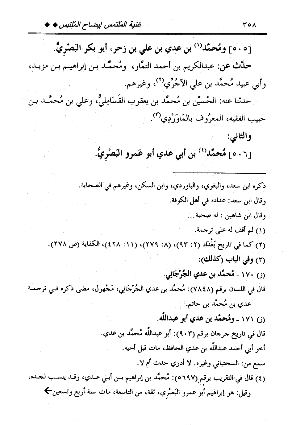 [505] وَمُحَمّد بن عدي بن عَليّ بن زحر، أَبُو بكر الْبَصْرِيّ.