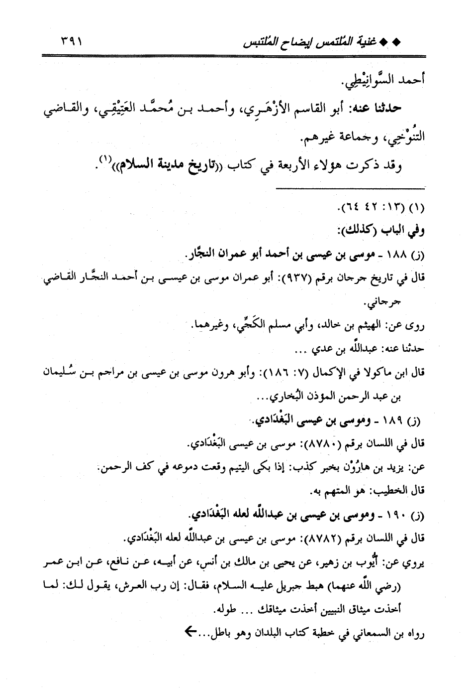 وَقد ذكرت هَؤُلَاءِ الْأَرْبَعَة فِي كتاب ((تَارِيخ مَدِينَة السَّلَام)) .