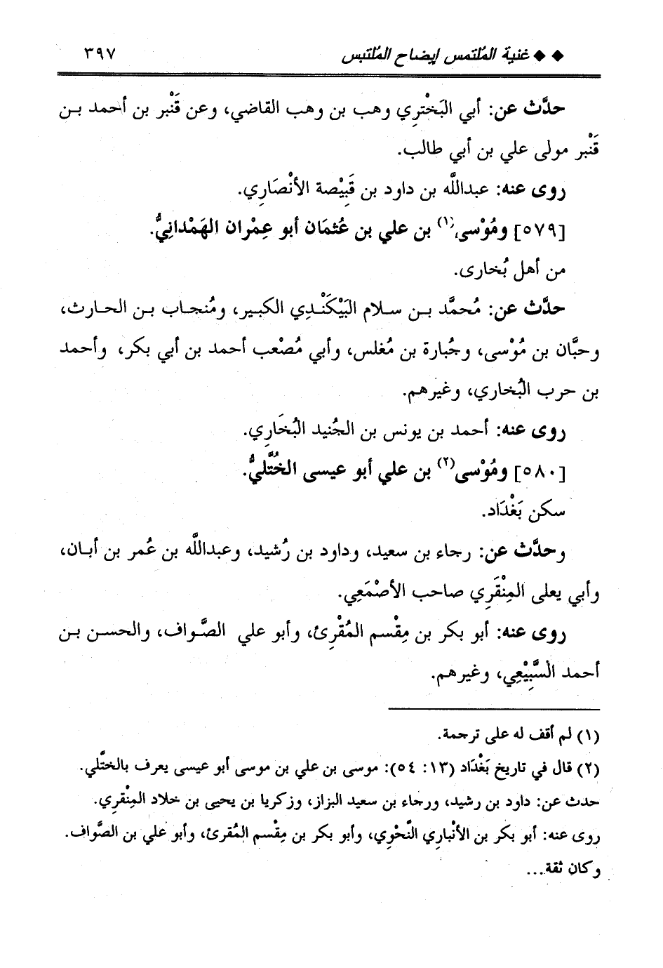 [580] ومُوسَى بن عَليّ أَبُو عِيسَى الْخُتلِي.