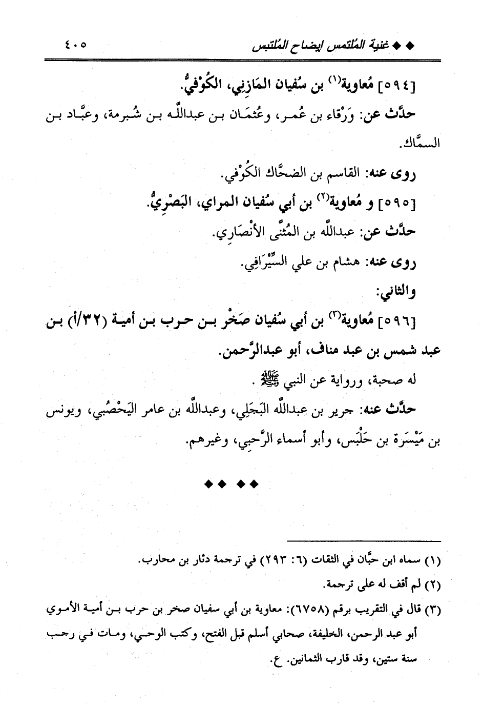 [596] مُعَاوِيَة بن أبي سُفْيَان صَخْر بن حَرْب بن أُميَّة (32 / أ) بن عبد شمس بن عبد منَاف، أَبُو عبد الرَّحْمَن.