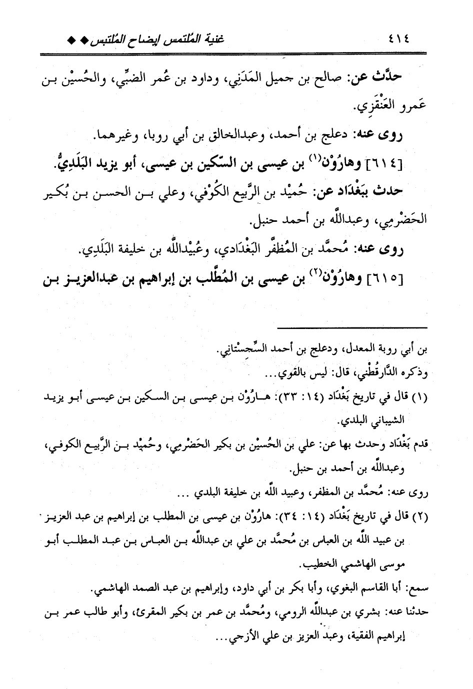 [614] وَهَارُون بن عِيسَى بن السكين بن عِيسَى، أَبُو يزِيد الْبَلَدِي.