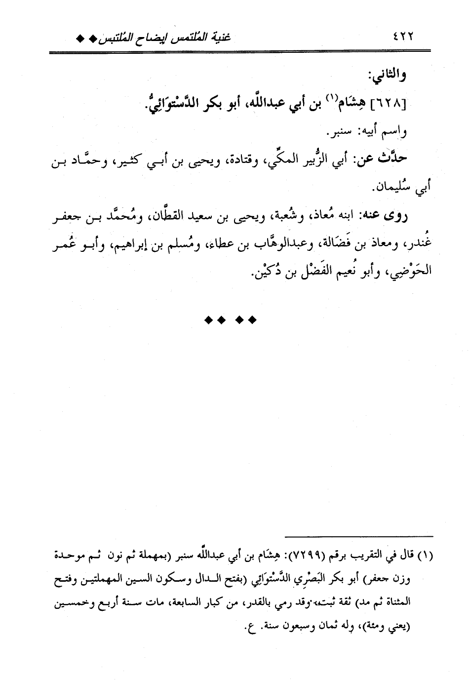 [628] هِشَام بن أبي عبد الله، أَبُو بكر الدستوَائي.