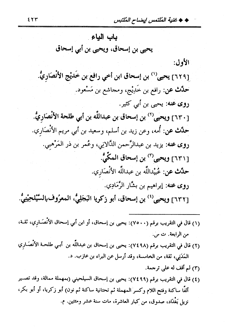 [631] وَيحيى بن إِسْحَاق الْمَكِّيّ.