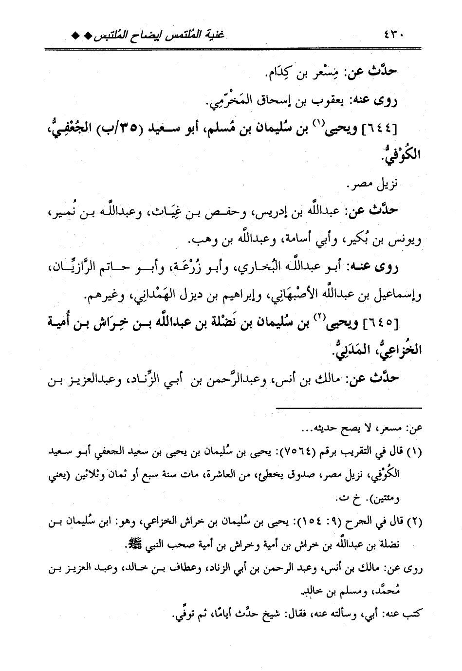 [644] وَيحيى بن سُلَيْمَان بن مُسلم، أَبُو سعيد (35 / ب) الْجعْفِيّ، الْكُوفِي.