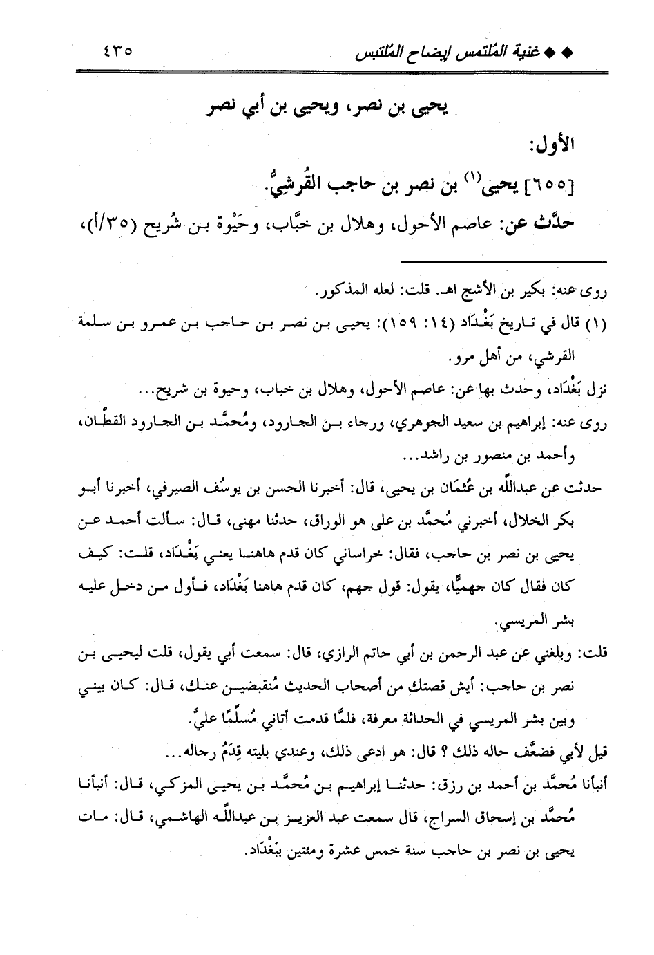 [655] يحيى بن نصر بن حَاجِب الْقرشِي.