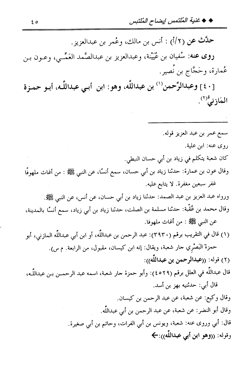 [40] وَعبد الرَّحْمَن بن عبد الله، وَهُوَ: ابْن أبي عبد الله، أَبُو حَمْزَة الْمَازِني