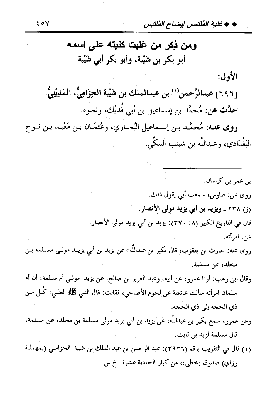 [696] عبد الرَّحْمَن بن عبد الْملك بن شيبَة الْحزَامِي، الْمَدِينِيّ.
