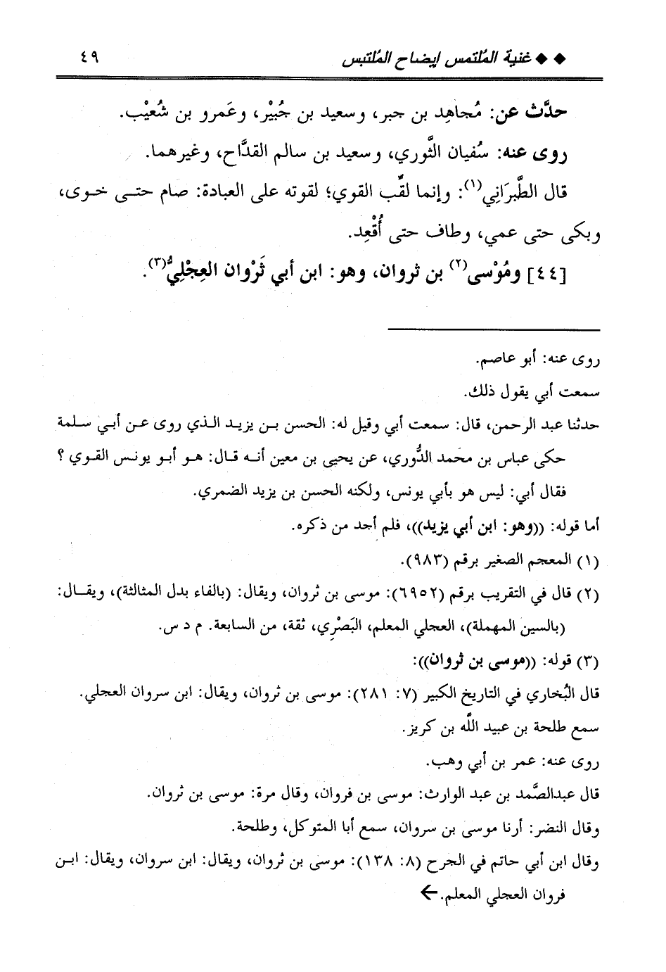 [44] ومُوسَى بن ثروان، وَهُوَ: ابْن أبي ثروان الْعجلِيّ.