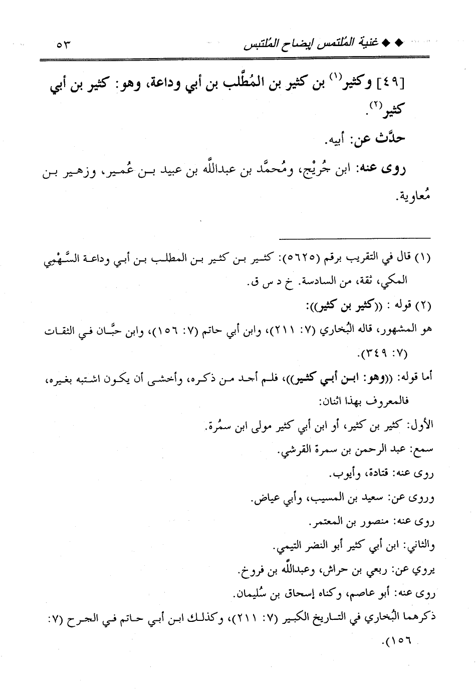 [49] وَكثير بن كثير بن الْمطلب بن أبي ودَاعَة، وَهُوَ: كثير بن أبي كثير.