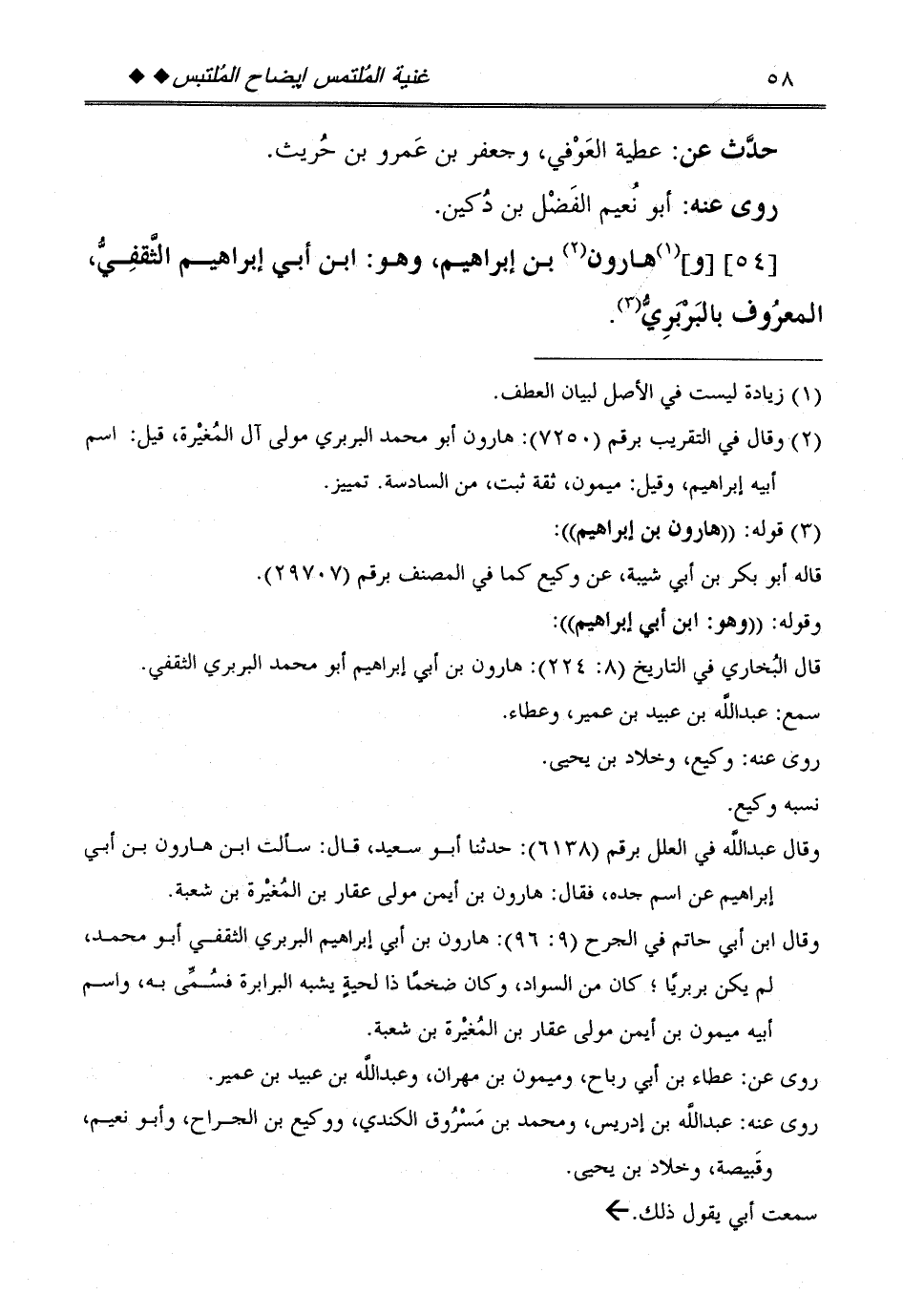[54] [و] هَارُون بن إِبْرَاهِيم، وَهُوَ: ابْن أبي إِبْرَاهِيم الثَّقَفِيّ، الْمَعْرُوف بالبربري.