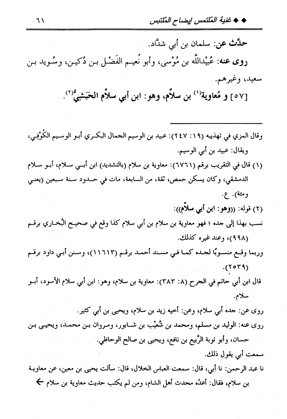 [57] وَمُعَاوِيَة بن سَلام، وَهُوَ: ابْن أبي سَلام الحبشي.