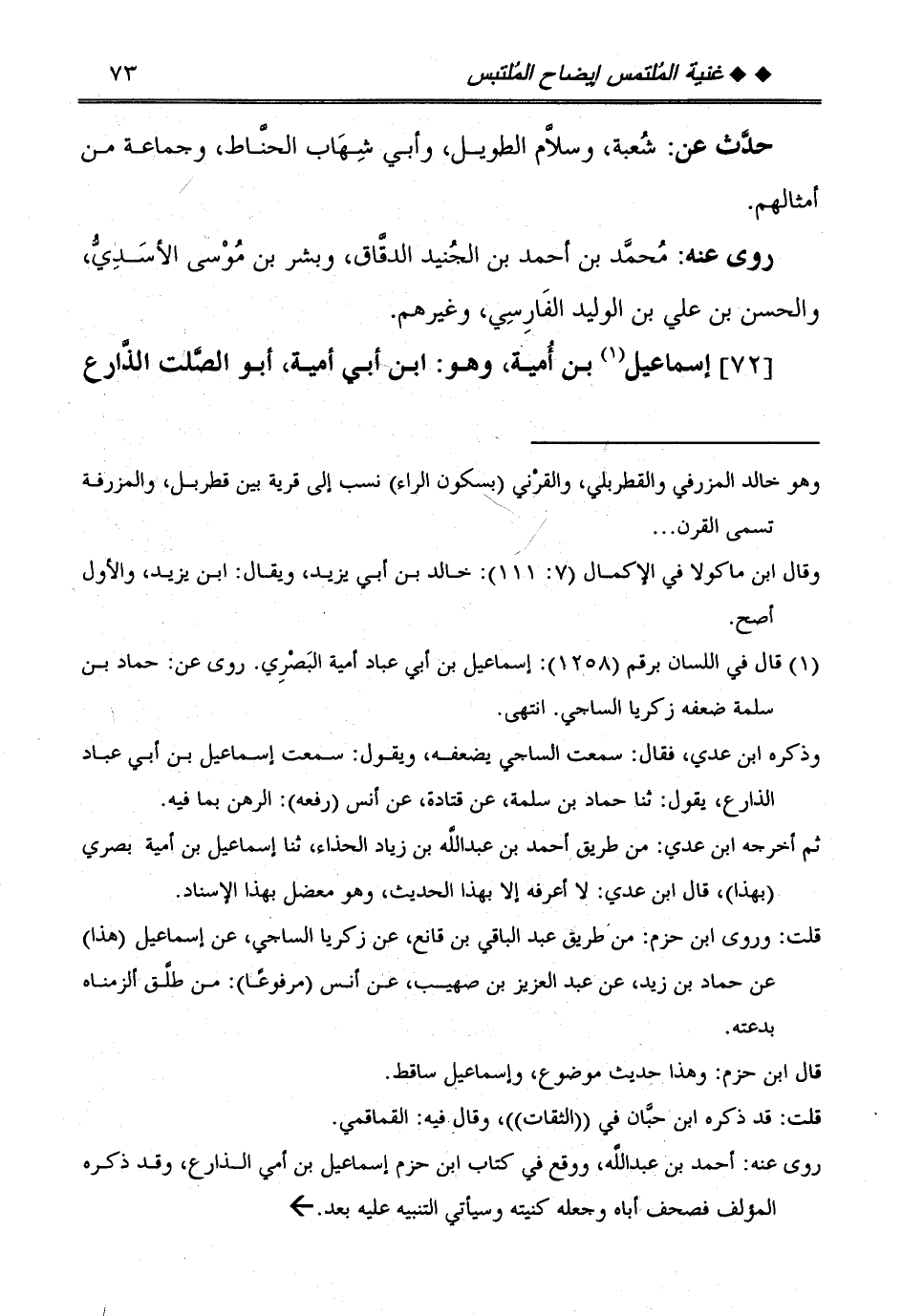 [73] إِسْمَاعِيل بن أُميَّة، وَهُوَ: ابْن أبي أُميَّة، أَبُو الصَّلْت الذارع