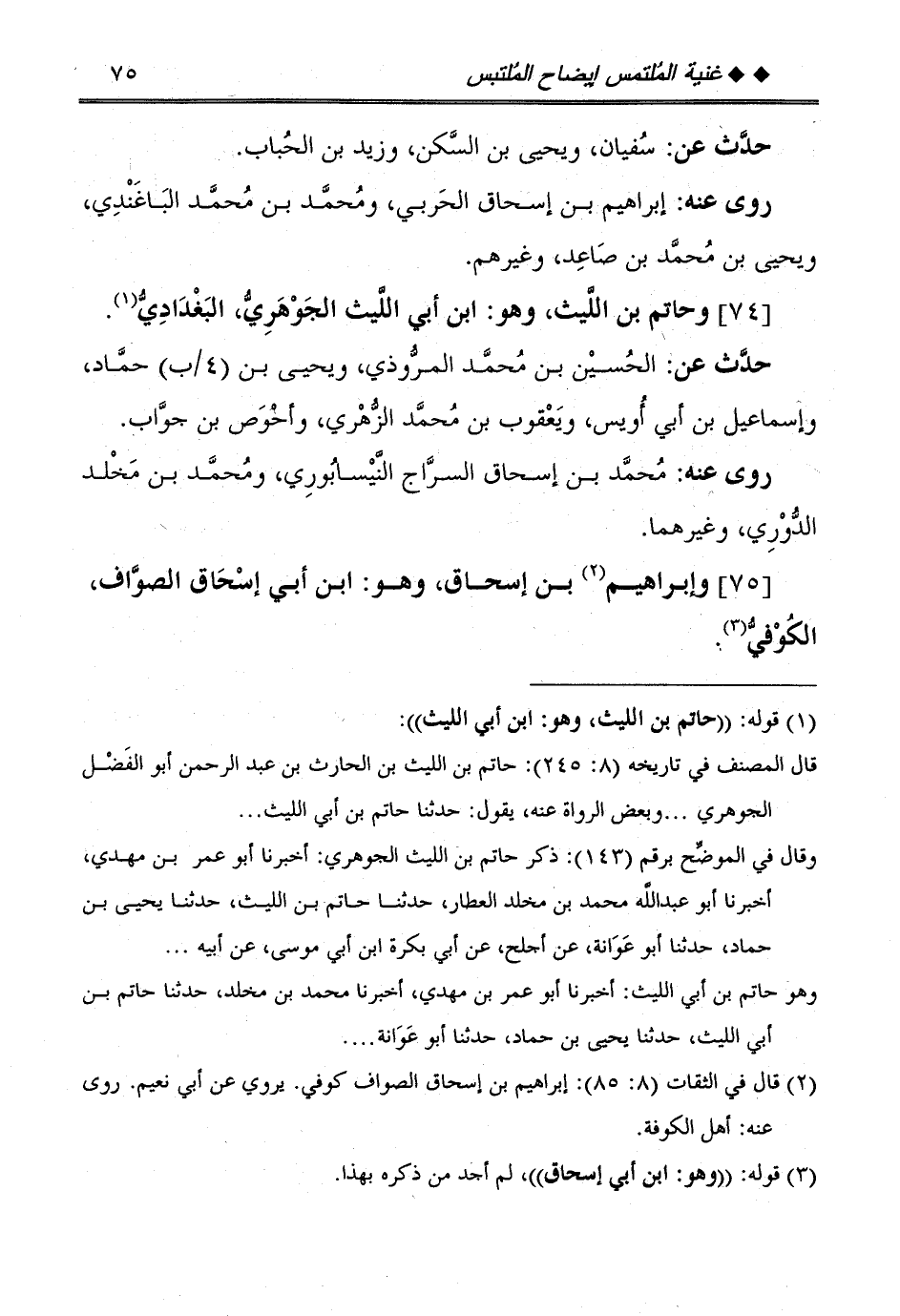[75] وَإِبْرَاهِيم بن إِسْحَاق: وَهُوَ: ابْن أبي إِسْحَاق الصَّواف، الْكُوفِي.