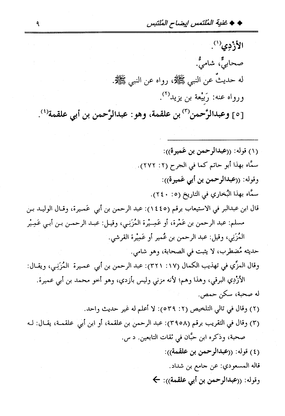 [5] وَعبد الرَّحْمَن بن عَلْقَمَة، وَهُوَ: عبد الرَّحْمَن بن أبي عَلْقَمَة.