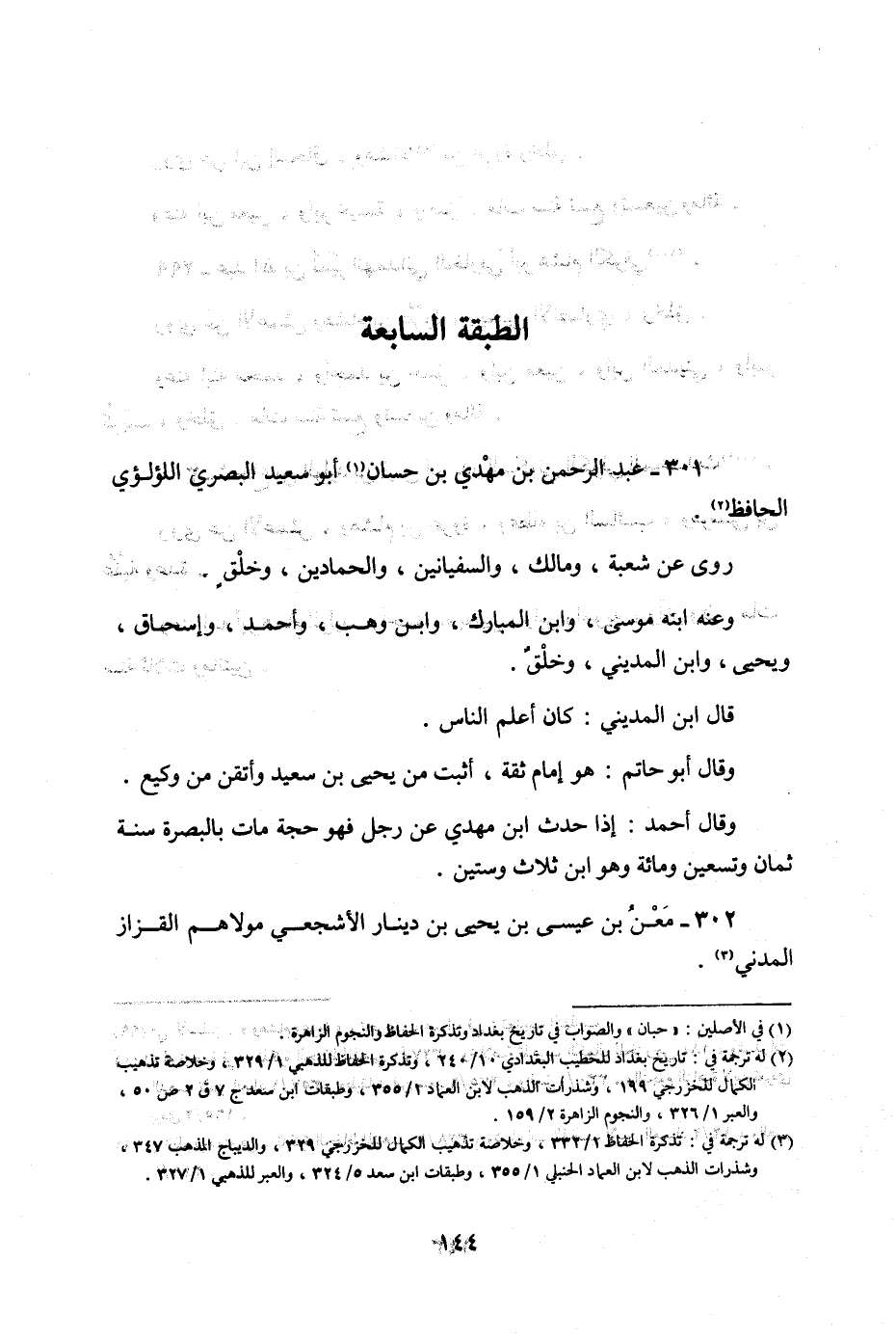 301 - عبد الرَّحْمَن بن مهْدي بن حسان أَبُو سعيد الْبَصْرِيّ اللؤْلُؤِي الْحَافِظ