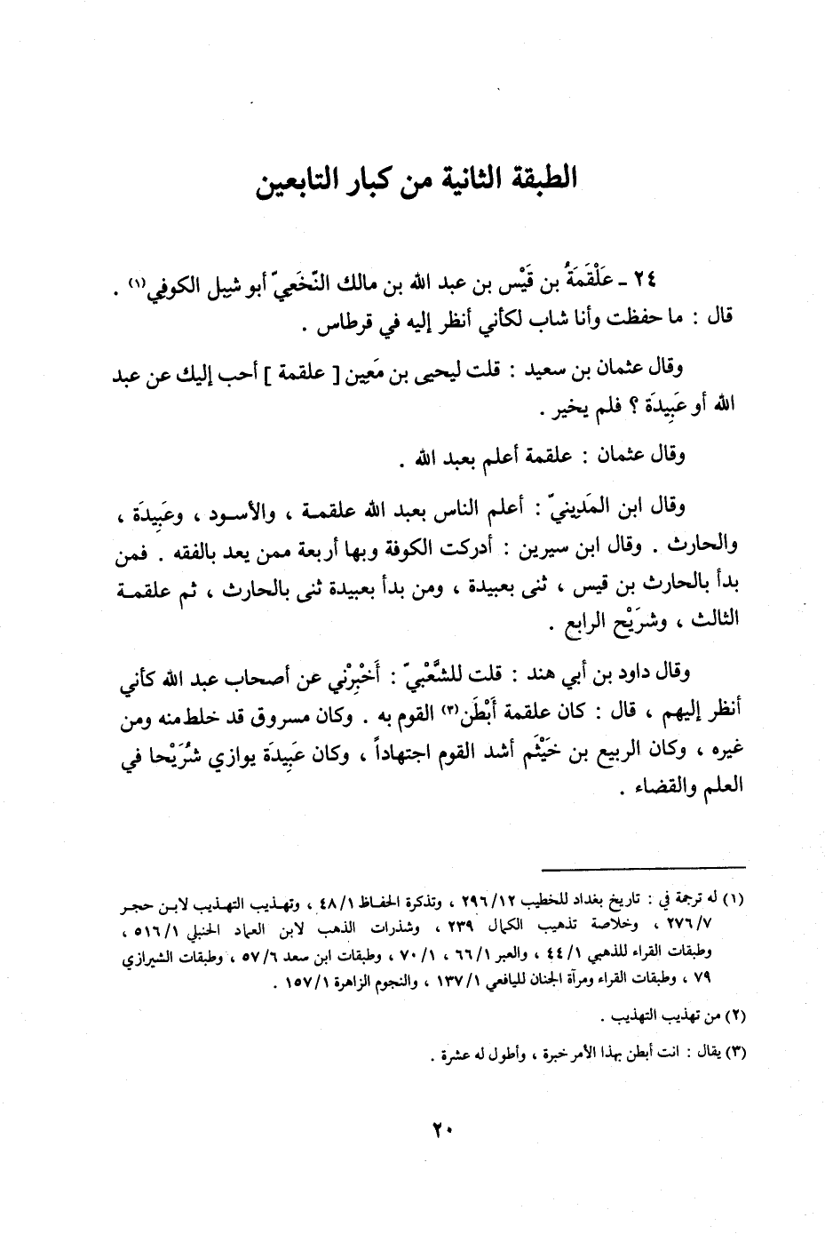 24 - عَلْقَمَة بن قيس بن عبد الله بن مَالك النَّخعِيّ أَبُو شبْل الْكُوفِي قَالَ مَا حفظت وَأَنا شَاب لكَأَنِّي أنظر إِلَيْهِ فِي قرطاس