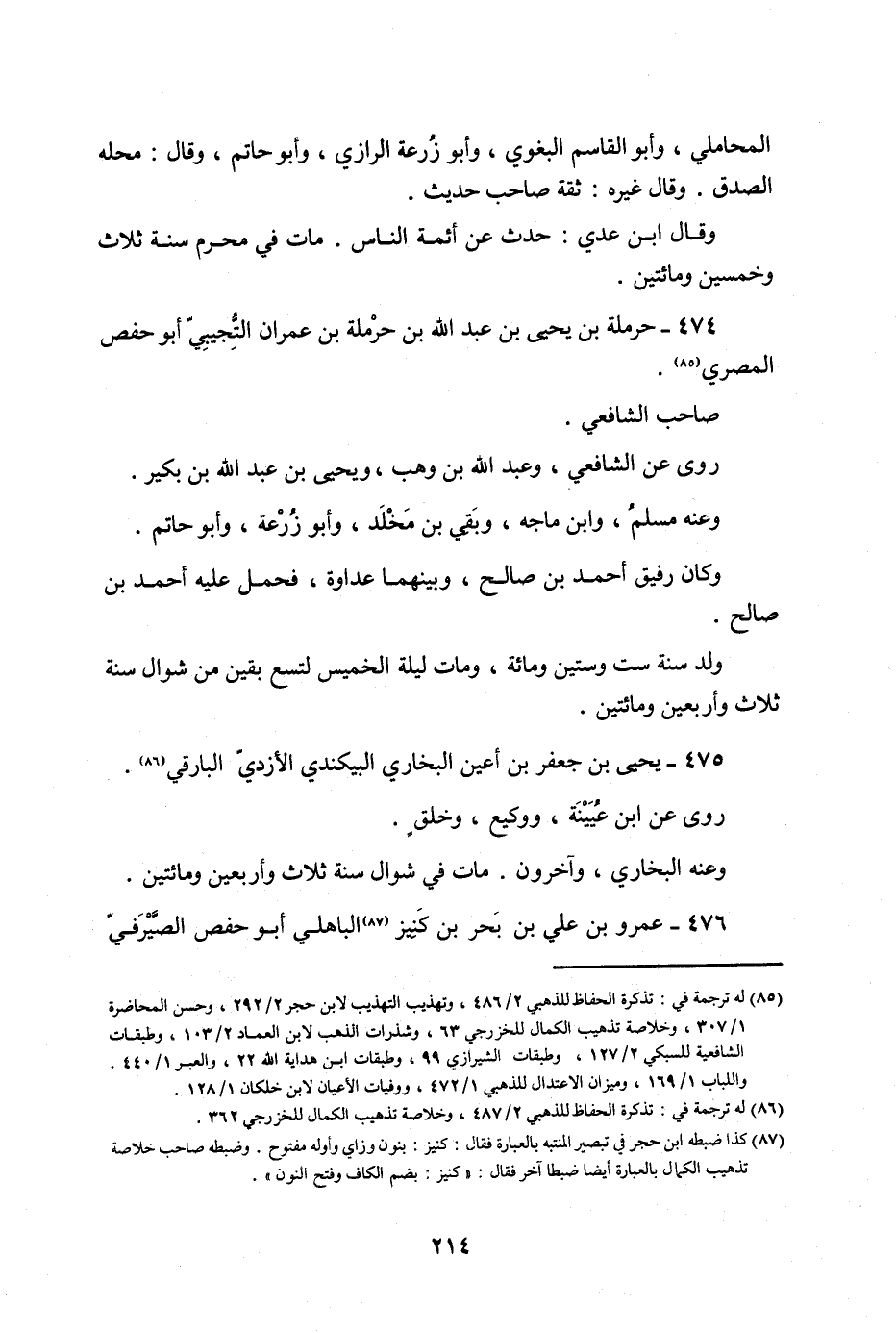 474 - حَرْمَلَة بن يحيى بن عبد الله بن حَرْمَلَة بن عمرَان التجِيبِي أَبُو حَفْص الْمصْرِيّ