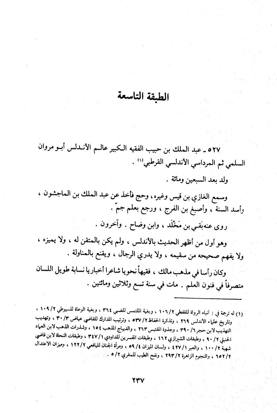 527 - عبد الْملك بن حبيب الْفَقِيه الْكَبِير عَالم الأندلس أَبُو مَرْوَان السّلمِيّ ثمَّ المرداسي الأندلسي الْقُرْطُبِيّ
