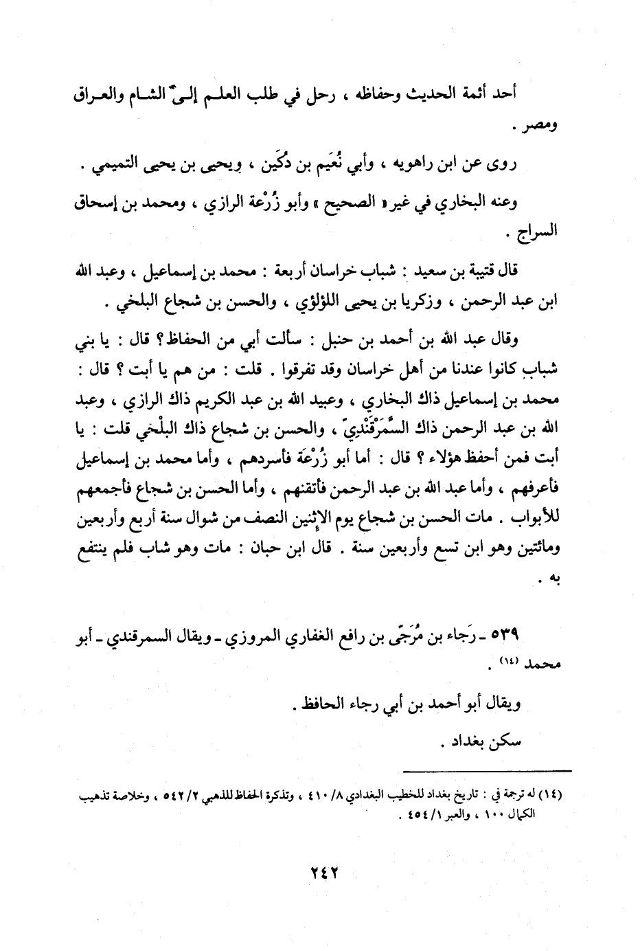 539 - رَجَاء بن مرجى بن رَافع الْغِفَارِيّ الْمروزِي وَيُقَال السَّمرقَنْدِي أَبُو مُحَمَّد