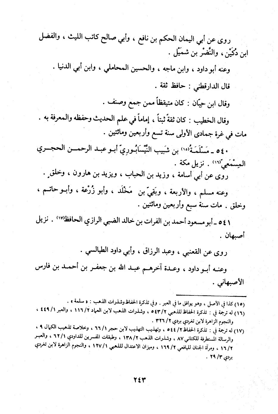 541 - أَبُو مَسْعُود أَحْمد بن الْفُرَات بن خَالِد الضَّبِّيّ الرَّازِيّ الْحَافِظ نزيل أَصْبَهَان
