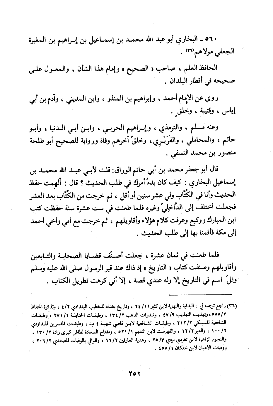 560 - البُخَارِيّ أَبُو عبد الله مُحَمَّد بن إِسْمَاعِيل بن إِبْرَاهِيم بن الْمُغيرَة الْجعْفِيّ مَوْلَاهُم