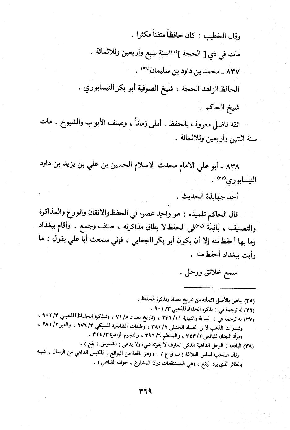 838 - أَبُو عَليّ الإِمَام مُحدث الْإِسْلَام الْحُسَيْن بن عَليّ بن يزِيد بن دَاوُد النَّيْسَابُورِي
