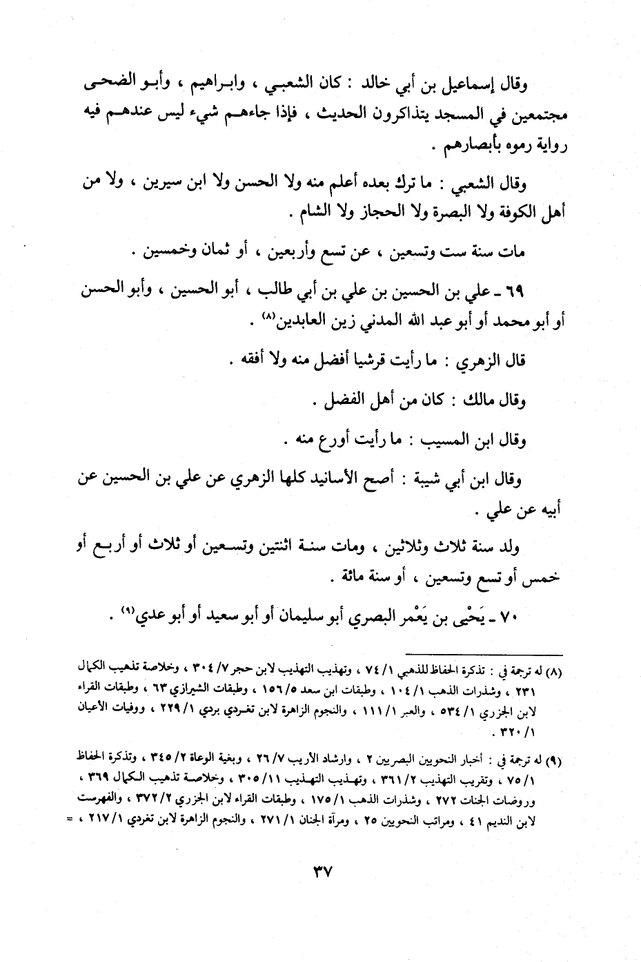 70 - يحيى بن يعمر الْبَصْرِيّ أَبُو سُلَيْمَان أَو أَبُو سعيد أَو أَبُو عدي