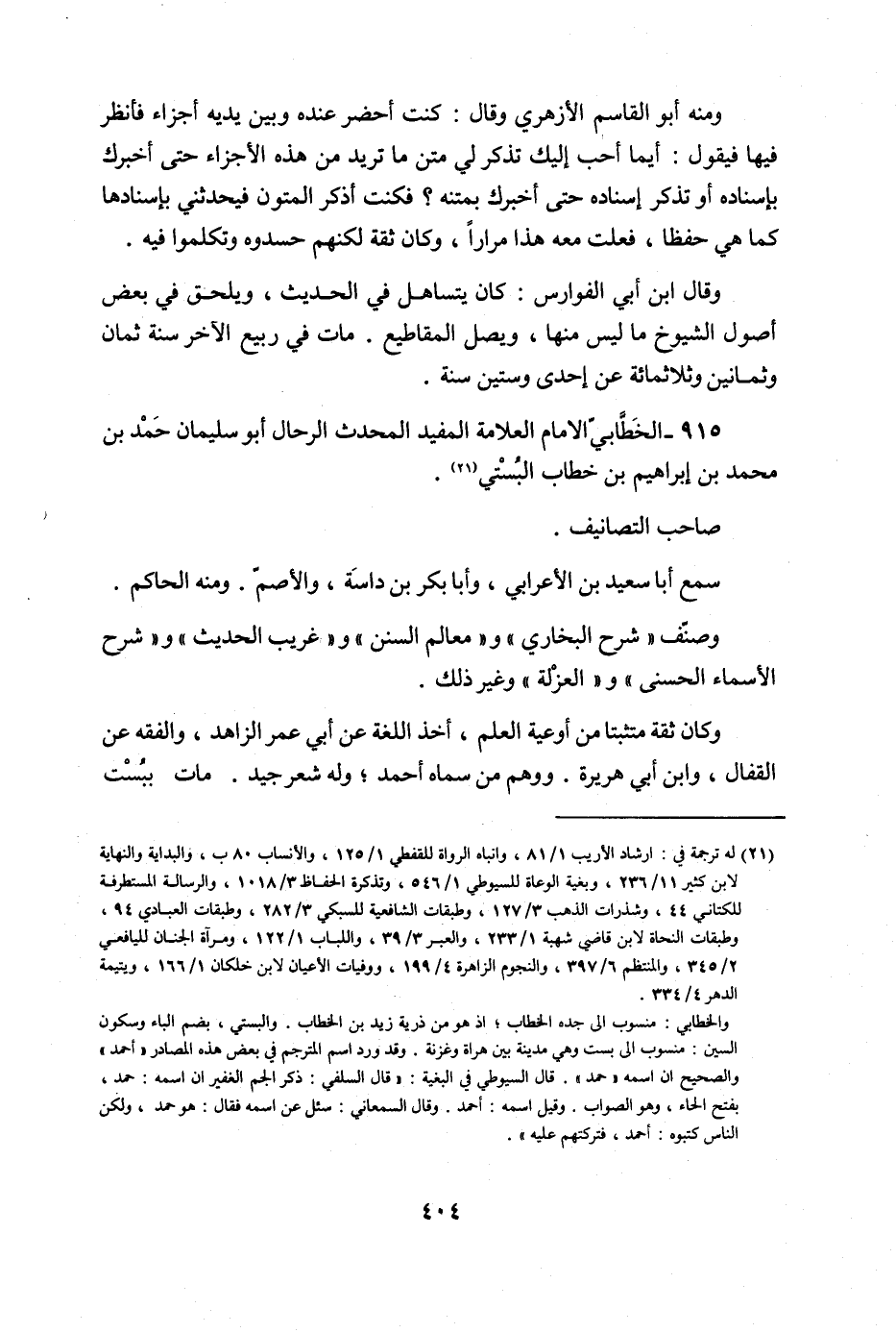 915 - الْخطابِيّ الإِمَام الْعَلامَة الْمُفِيد الْمُحدث الرّحال أَبُو سُلَيْمَان حمد بن مُحَمَّد بن إِبْرَاهِيم بن خطاب البستي